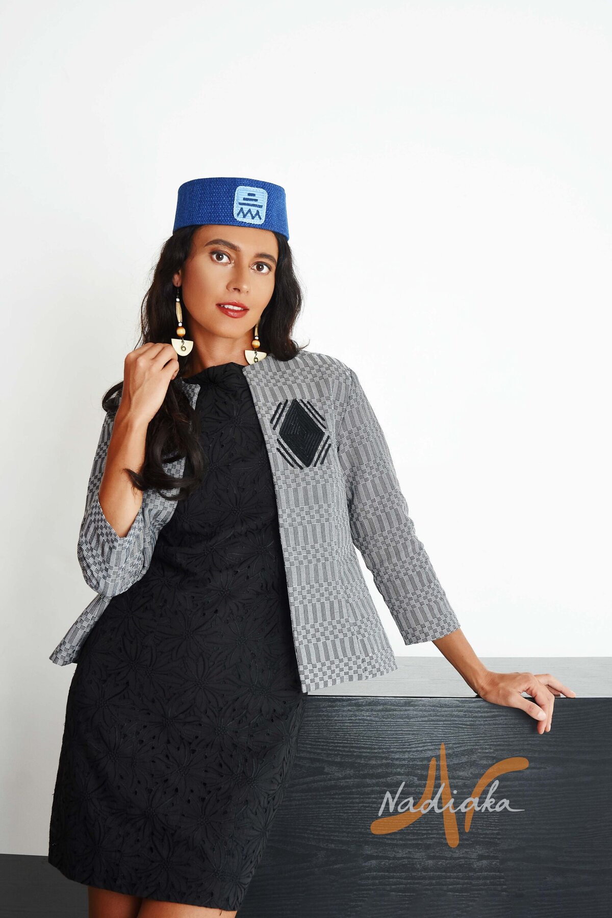 Veste en tissu lokpo du Togo blanc / noir